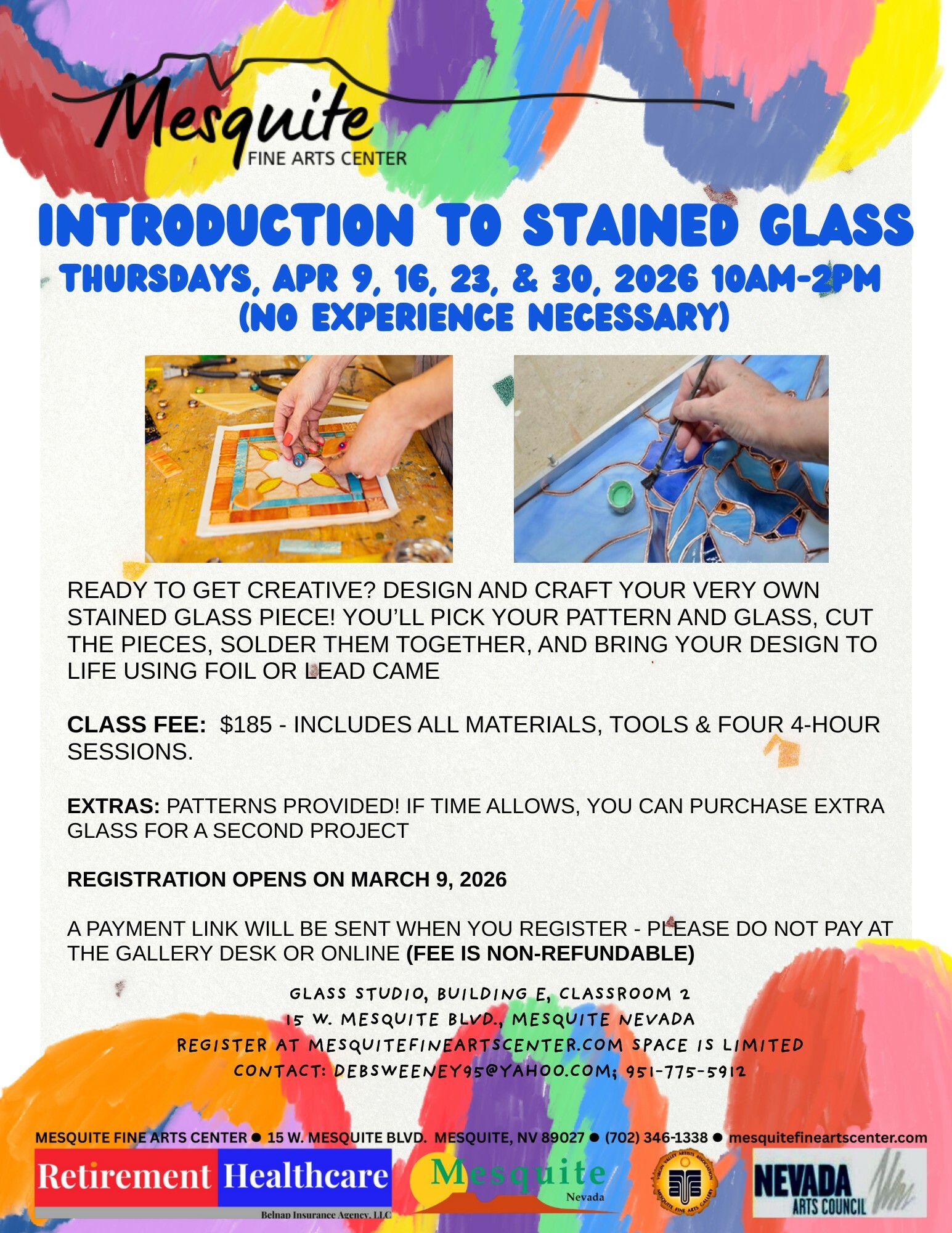 Registration is required. This class is 4 sessions, each session is 4 hours. Class fee is $185 and non-refundable. Payment link will be sent soon after registration.